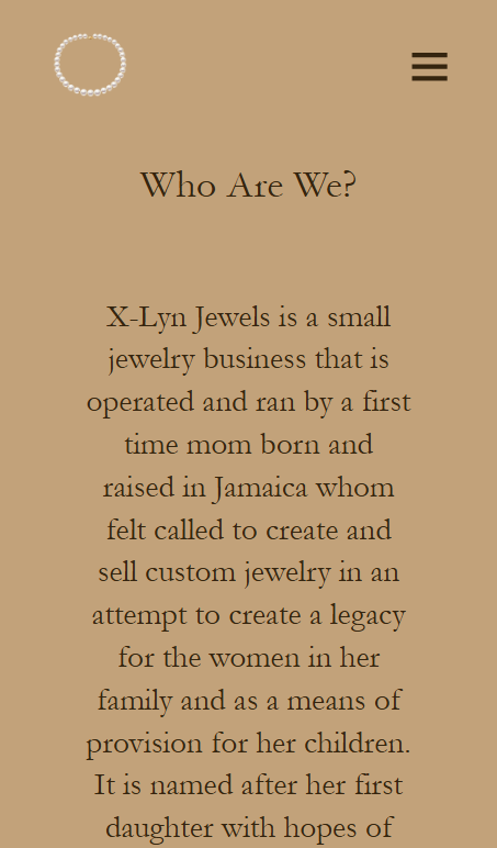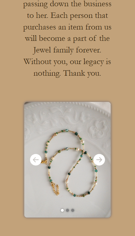 This website is developed using JavaScript, React, and Tailwind CSS to create a clean, responsive, and efficient front-end for a family-owned jewelry business... The website includes key pages under development: a comprehensive About page with in-depth information about the business and a Pricing and Packages page designed to be transparent and user-friendly. The project emphasizes clean code, scalability, and maintainability to support future feature additions and business growth.